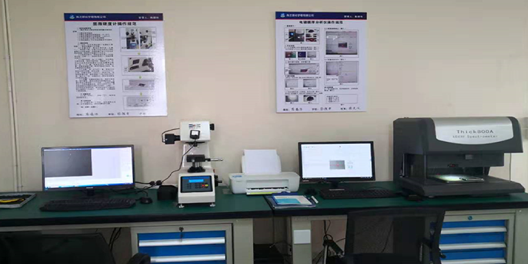 公司建有自動、半自動化學鍍鎳生產線,配套有藥液自動分析補加機、純水機、真空烘箱、臺車式大烘箱,遂道式烘干機、鹽霧試驗機、x熒光光譜測厚儀、顯微維氏硬度計等,化學鍍鎳設備及鍍層檢測設備齊全